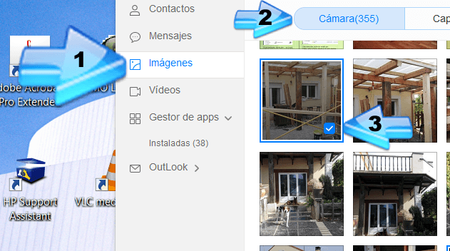 Yo elijo imágenes de cámara, pero dentro del menú, puedo elegir: imágenes de WhatsApp, videos, etc.…